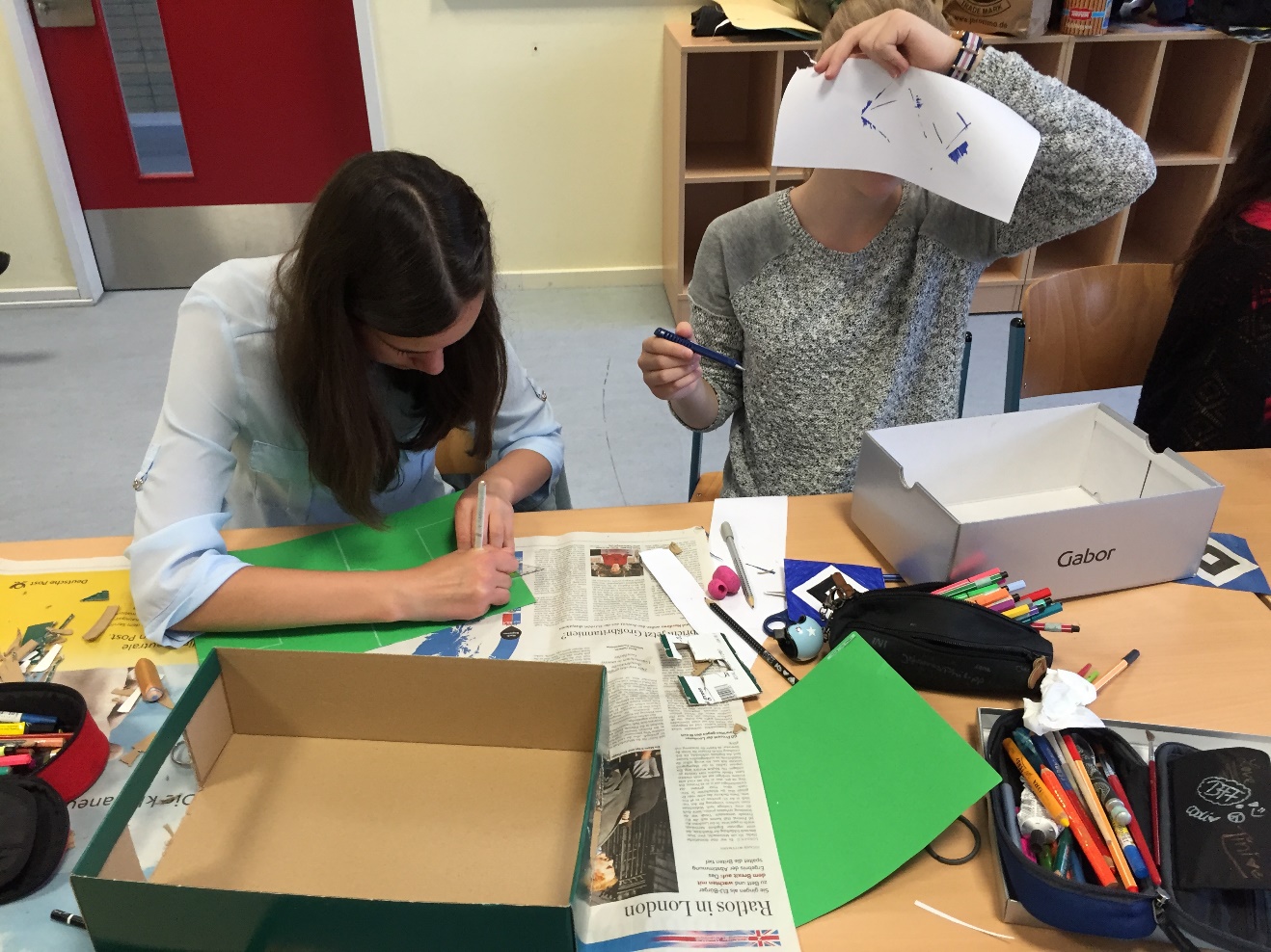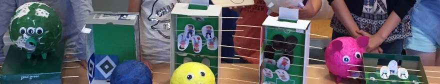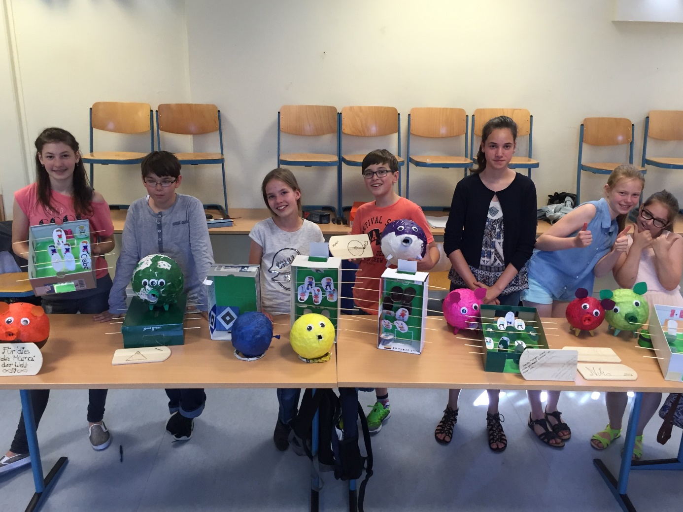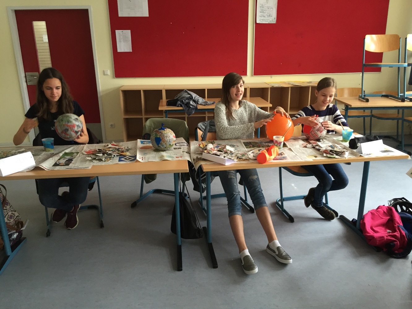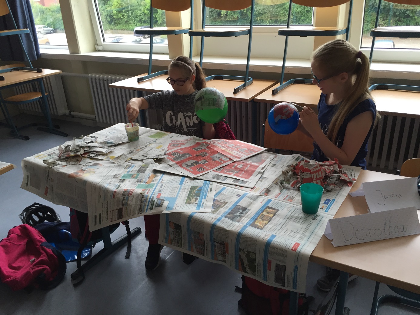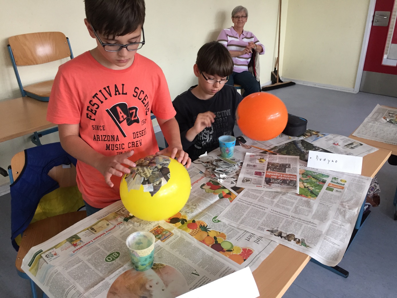 Am ersten Tag haben wir aus alter Zeitung und Papier Sparschweine gebastelt. Diese altbekannte Technik namens Pappmaché hat den fleißigen Bastlern viel Spaß gemacht.
