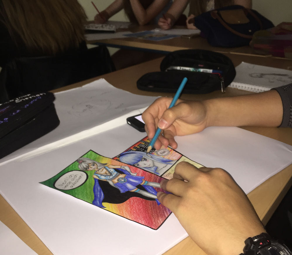 In diesem Projekt, welches 16 Schüler besuchen, ist der Name die Frage, mit der die Teilnehmer sich täglich auseinandersetzen. Zunächst sollte sich jeder Teilnehmer einen Nahmen, eeine Gesichte, einen Feind, eine Superkraft und ein Logo überlegen. Danach ging es darum, dasss jeder in Form eines Comics seine Geschichte skizziert. Ob es um eine Situation mitten aus dem Superhelden-Leben ging, wie man zum Superhelden wurde oder wie man seinen Feind bekämpft spielte dabei keine Rolle.